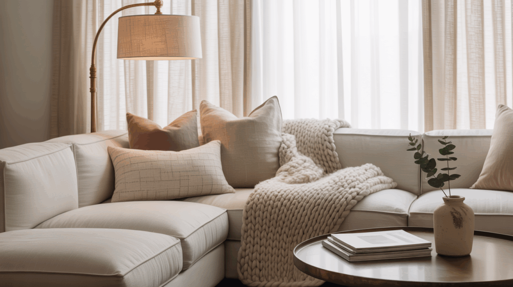 But it’s not all pale and muted—strategic pops of color add depth. Think forest green in an accent chair, navy in a throw pillow, or matte black hardware that grounds a space. Use color intentionally, not excessively.