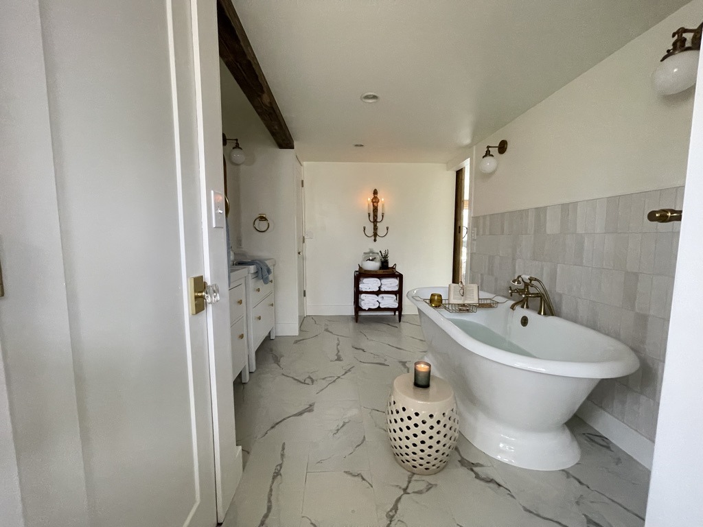 This is the one real splurge we made, though it’s still reasonable compared to what some tubs cost. We were inspired by a setup we saw at Restoration Hardware—a gorgeous vintage freestanding tub. I specifically didn’t want clawfoot; I wanted something a bit more modern cottage.
