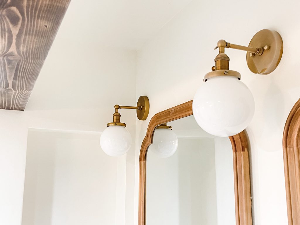 These vintage-style lights have individual switches, so you can control your lighting even more. I can’t emphasize enough how much difference this makes in a bathroom or any space. Being able to have different lighting in different areas completely transforms the mood.